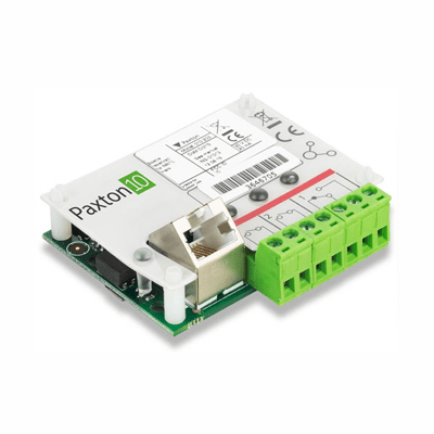 Kleine Paxton10 Alarm Connector voor integratie van brand en inbraaksystemen.